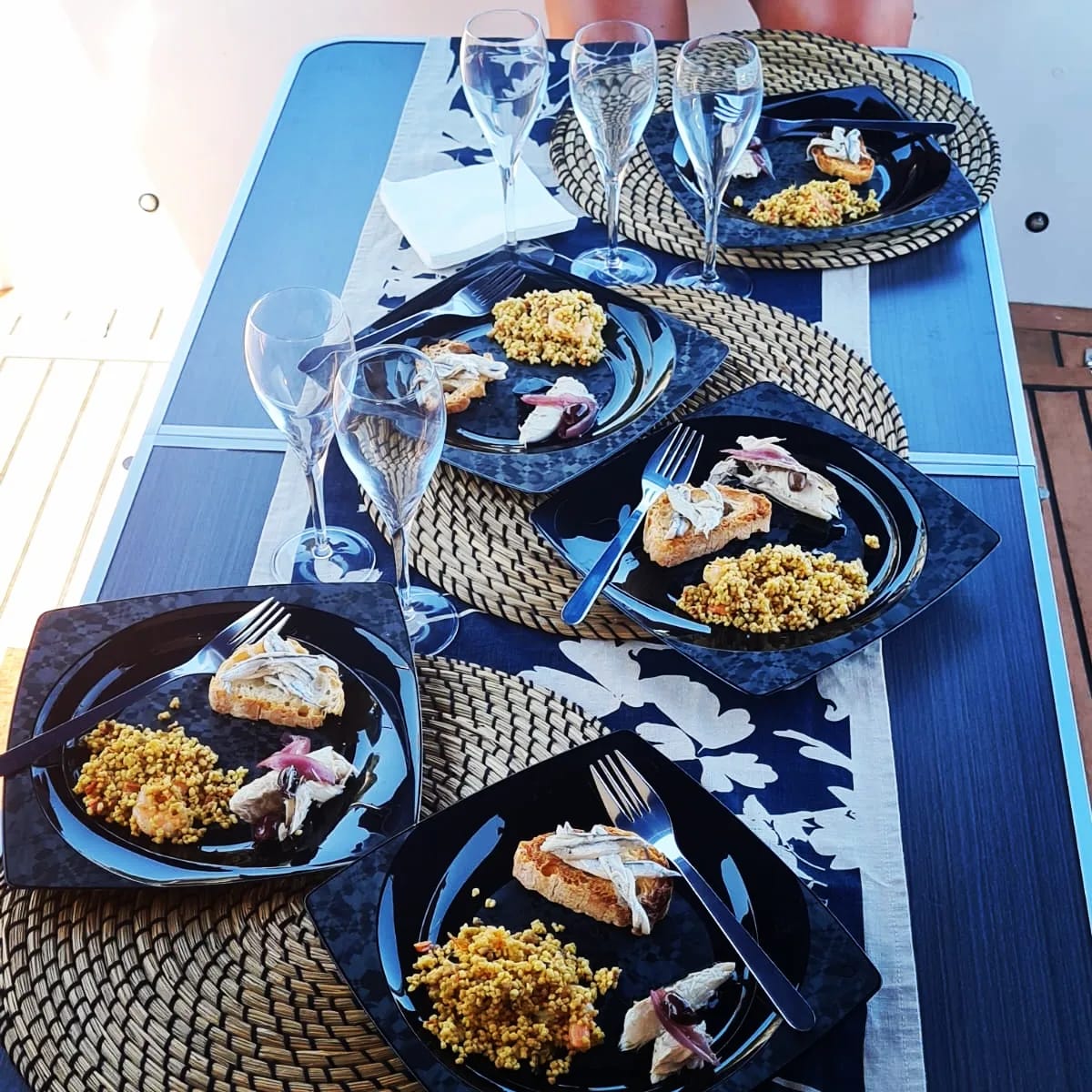 con aperitivo a bordo.